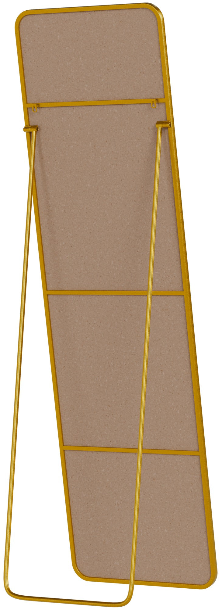 Het stevige metalen frame is beschikbaar in drie afwerkingen: Mat Zwart, Glanzend Goud of Mat Wit. Het heldere spiegeloppervlak garandeert een zuivere reflectie en kan helpen bij het creëren van een ruimer en lichter effect in de ruimte.