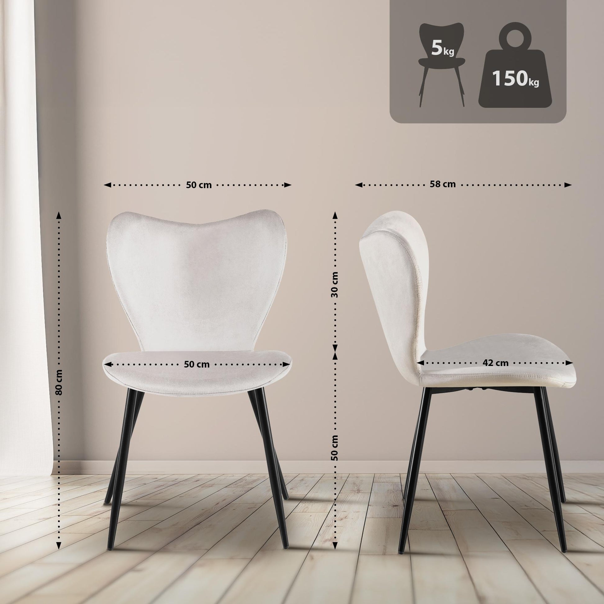 De basis van deze ergonomische eetkamerstoel is het stabiele viervoetige frame van zwart, gepoedercoat metaal. De stoel Maika kan veilig worden belast tot 150 kilogram. Vloerbeschermers voorkomen beschadiging van gevoelige vloeren.