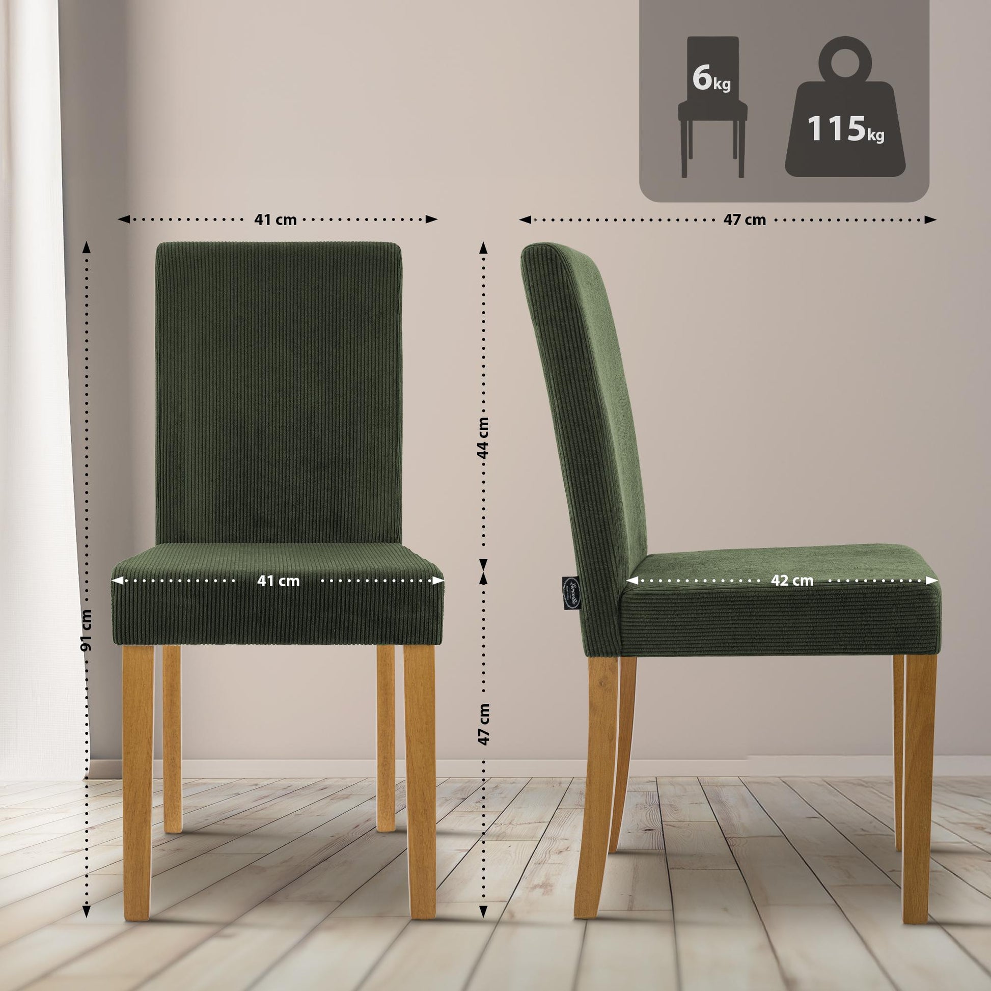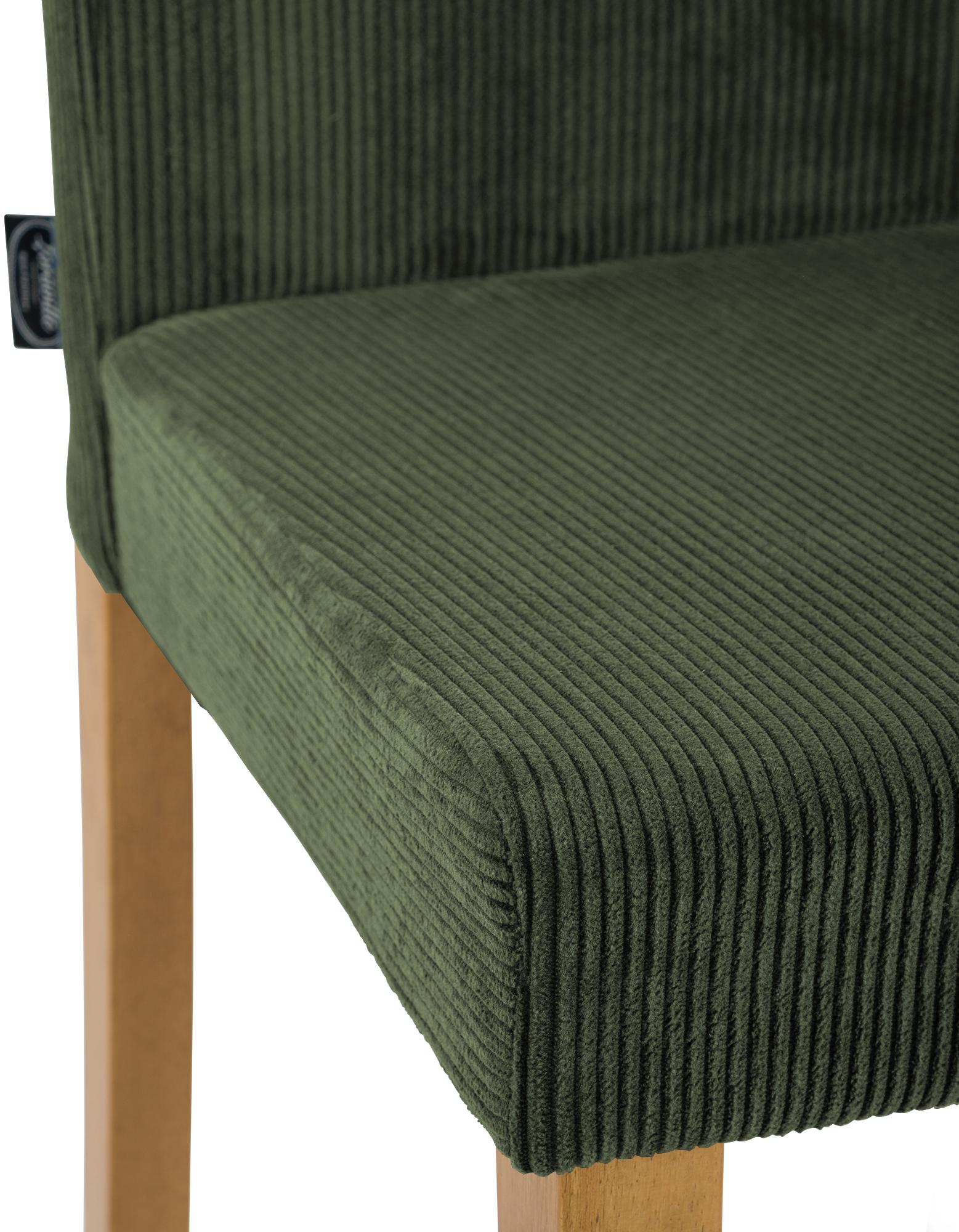 Groene Corduroy Eetkamerstoel – Keukenstoel – Extra Comfort, Stevig Houten Frame, Bodembescherming