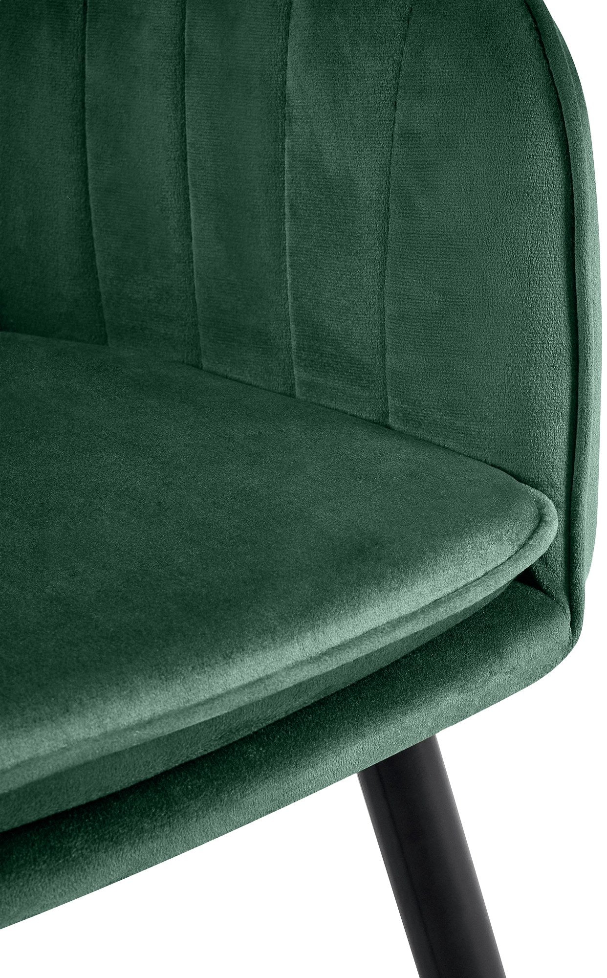 De eetkamerstoel maakt indruk met zijn stijlvolle combinatie van modern design, hoge functionaliteit en aangenaam zitcomfort. Met zijn zachte fluwelen bekleding, ergonomisch gevormde rugleuning en gevoerde armleuningen biedt hij maximaal comfort, waardoor hij ideaal is voor lange avonden eten, lezen of werken.