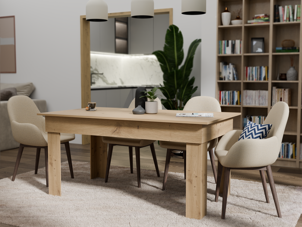 Maak kennis met de Grote Eettafel Madras in stijlvolle artisan eiken kleur. Deze praktische tafel combineert een robuust design met warme uitstraling, waardoor hij perfect past in iedere moderne eetkamer of keuken. Dankzij de royale afmetingen biedt de Madras tafel volop ruimte voor gezellige diners, spelletjesavonden of het ontvangen van gasten. De stabiele constructie staat garant voor jarenlang probleemloos gebruik, terwijl het neutrale design eenvoudig te combineren is met diverse interieurstijlen en andere meubelstukken.