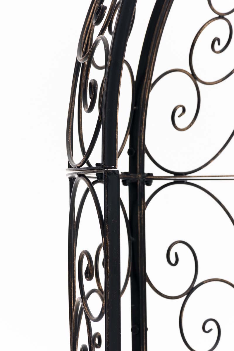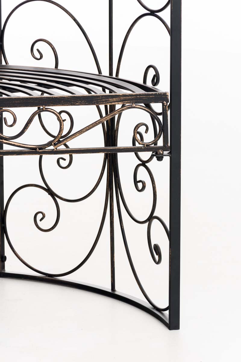 Beëindig je dag in de tuin en geniet van een ontspannen avond. Dit halfronde paviljoen met een bankje is perfect afgestemd op jouw behoeften. Het heeft een elegant ontwerp en fungeert ook als trellis voor klimplanten. Wanneer het volledig begroeid is, straalt het pure schoonheid uit. De sierlijke decoraties maken het tot een echte blikvanger. Handgemaakt van ijzer, is dit halve paviljoen uiterst stabiel. Een poedercoating garandeert uitmuntende kwaliteit en een lange levensduur, zodat je er jarenlang plezier van hebt.