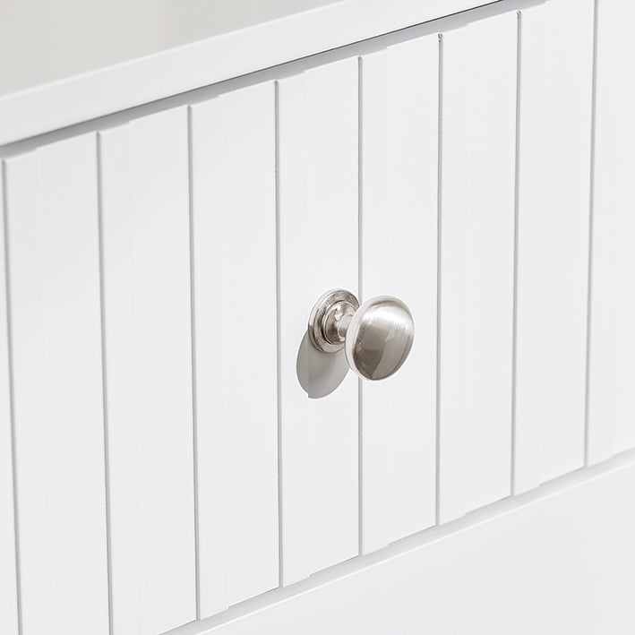 Dit lage kastje met deur en lade is perfect voor kleinere badkamers. De metalen poten bieden zowel stabiliteit als stijl, waardoor het een veelzijdige en praktische opbergoplossing is.