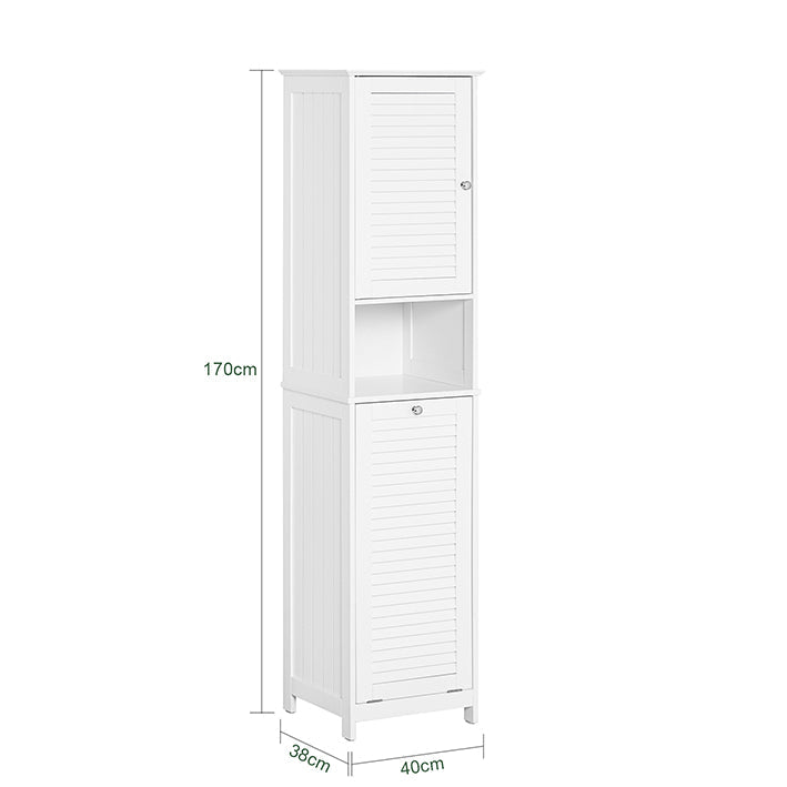 Hoge Badkamerkast met Uitklapbare Waszak - Linnenkast - Opbergplank - Verstelbare Plank - Anti-Tip Apparaat - Wit - 40cm x 170cm x 38cm