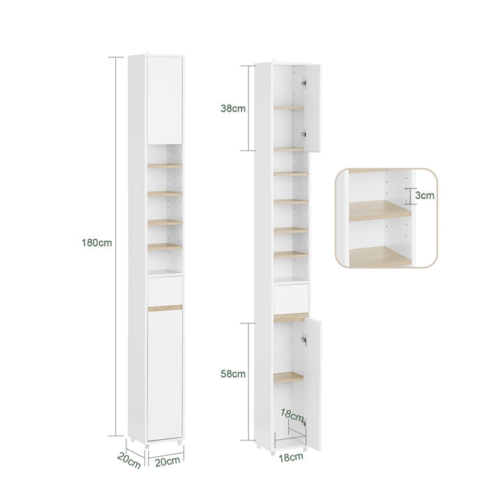 Hoge Badkamerkast - Opbergmeubel - Organisator - Veelzijdige opbergruimte - 20x180x20cm - MDF E1 Geverfd - Verstelbare Planken - Veilig en antislip