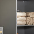 Voldoende opslagcapaciteitUitgerust met drie open vakken en een gesloten gedeelte met twee planken, waarvan één verstelbaar, biedt deze kast veelzijdige opbergmogelijkheden voor al je badkamerbenodigdheden, van handdoeken tot toiletartikelen.