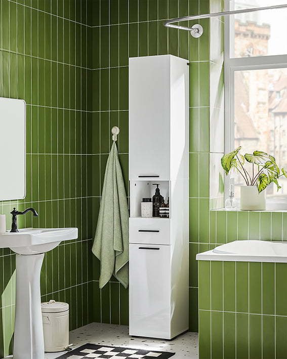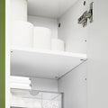 De hoge kast biedt optimale opbergoplossingen en is 182 cm hoog, met 7 compartimenten en 4 verstelbare planken voor veelzijdige organisatie. Het PB (E1)-materiaal van de kast straalt duurzaamheid uit, terwijl een kleine lade voor meer gemak zorgt.