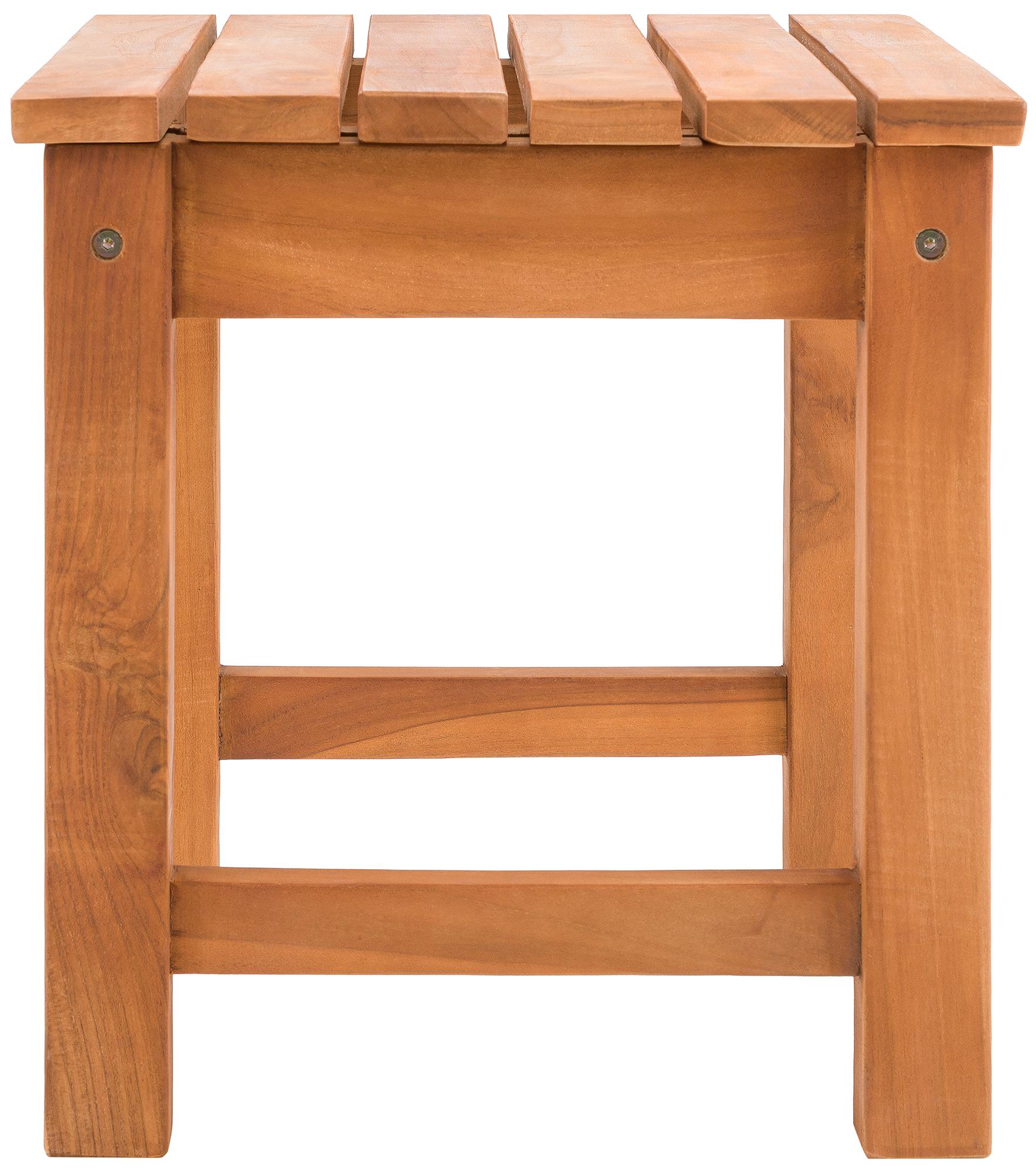 Deze houten bijzettafel is vervaardigd uit massief teakhout en blinkt uit in stabiliteit en duurzaamheid. De unieke houtnerf gecombineerd met een warme goudbruine tint zorgt voor een natuurlijke, hoogwaardige uitstraling. Deze tafel kan zowel als krukje als voetsteun gebruikt worden.