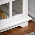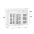 Het keukenkastopbergmeubel is ontworpen om aan al uw keukenopslagbehoeften te voldoen. Deze kast heeft 3 glazen deuren, 2 lades, 3 wijnglashouders en 2 flessenplanken, waardoor er voldoende ruimte is voor je favoriete wijnen, glazen en keukenbenodigdheden.