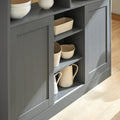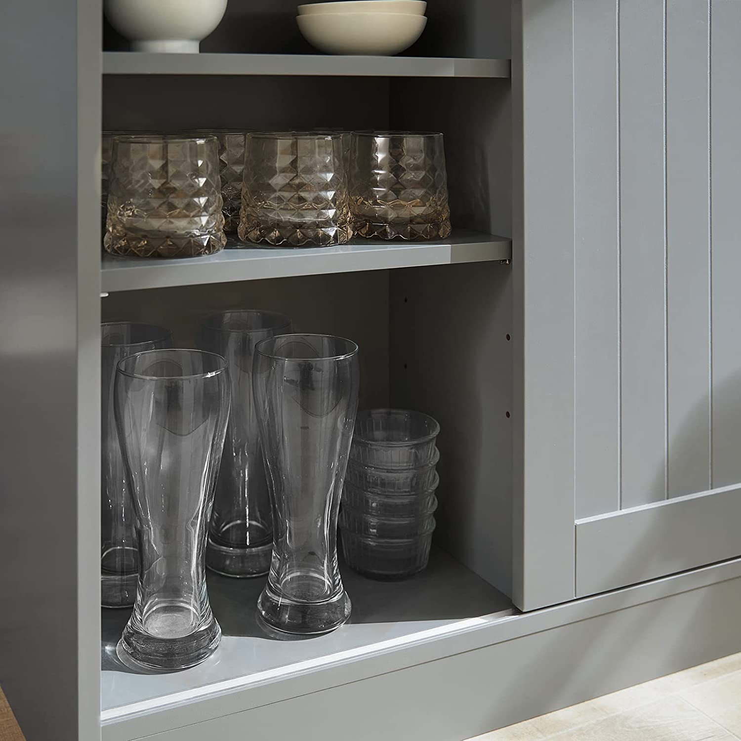 - 2 open vakken onder het hogere werkblad en 6 verstelbare planken bieden voldoende opbergruimte.