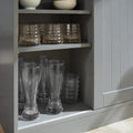 - Achter het dressoir bevindt zich een opklapbaar werkblad. Door de wielen aan de onderkant van het frame kun je het extra werkblad gemakkelijk uit- of inklappen.