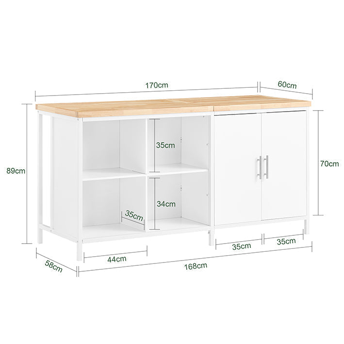 Keukeneiland Opbergkast - Eetbuffet - Displaystandaard - MDF - Metalen frame - Rubberhouten tafelblad - 170 cm x 89 cm x 60 cm