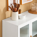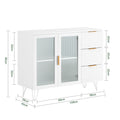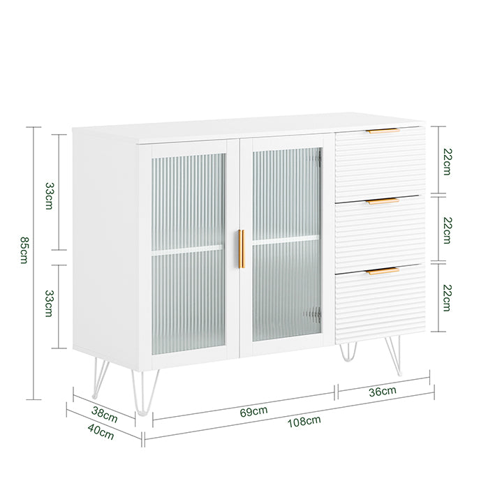 Voldoende opslag met organisatorisch gemakDeze keukenkast is uitgerust met twee glazen deuren en drie laden en biedt veelzijdige opbergoplossingen, waardoor je borden, bestek en andere keukenbenodigdheden gemakkelijk netjes kunt ordenen.
