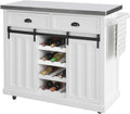 Keukenopbergwagen - Keukenkast - Kast - Dressoir - Keukeneiland met RVS Bovenblad & 2 Schuifdeuren