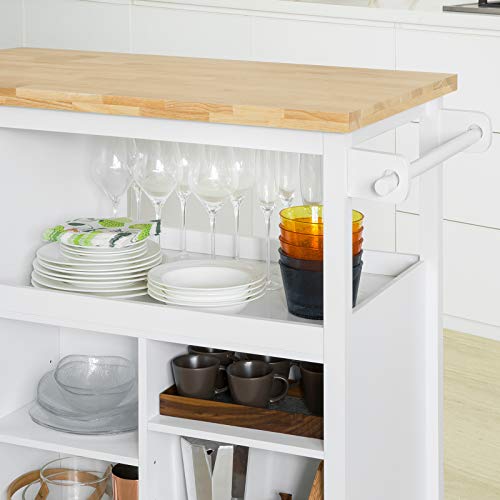 Keukenopbergwagen Keukenkast Kast Dressoir Keukeneiland met werkblad van rubberhout