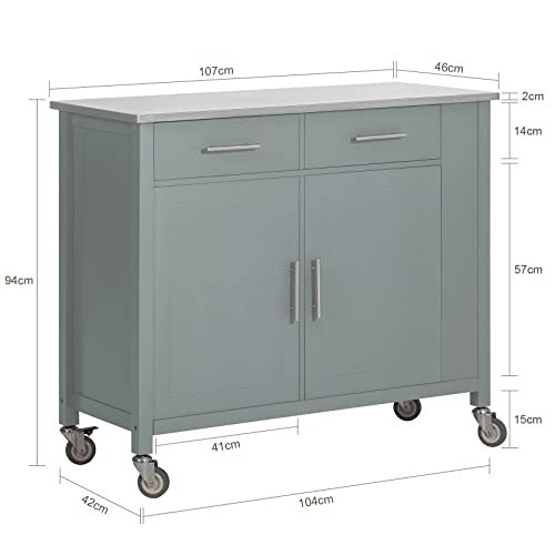 keukenopbergwagen met roestvrijstalen werkblad - keukeneiland keukenkast kast dressoir op wielen