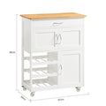 Keukenserveerwagen - Keukenkast - Mobiele barwagen - Witte afwerking - Ruime opbergruimte met flessenplanken, lade en deuren - Gemakkelijke mobiliteit met afsluitbare wielen - 67 cm x 86 cm x 38 cm