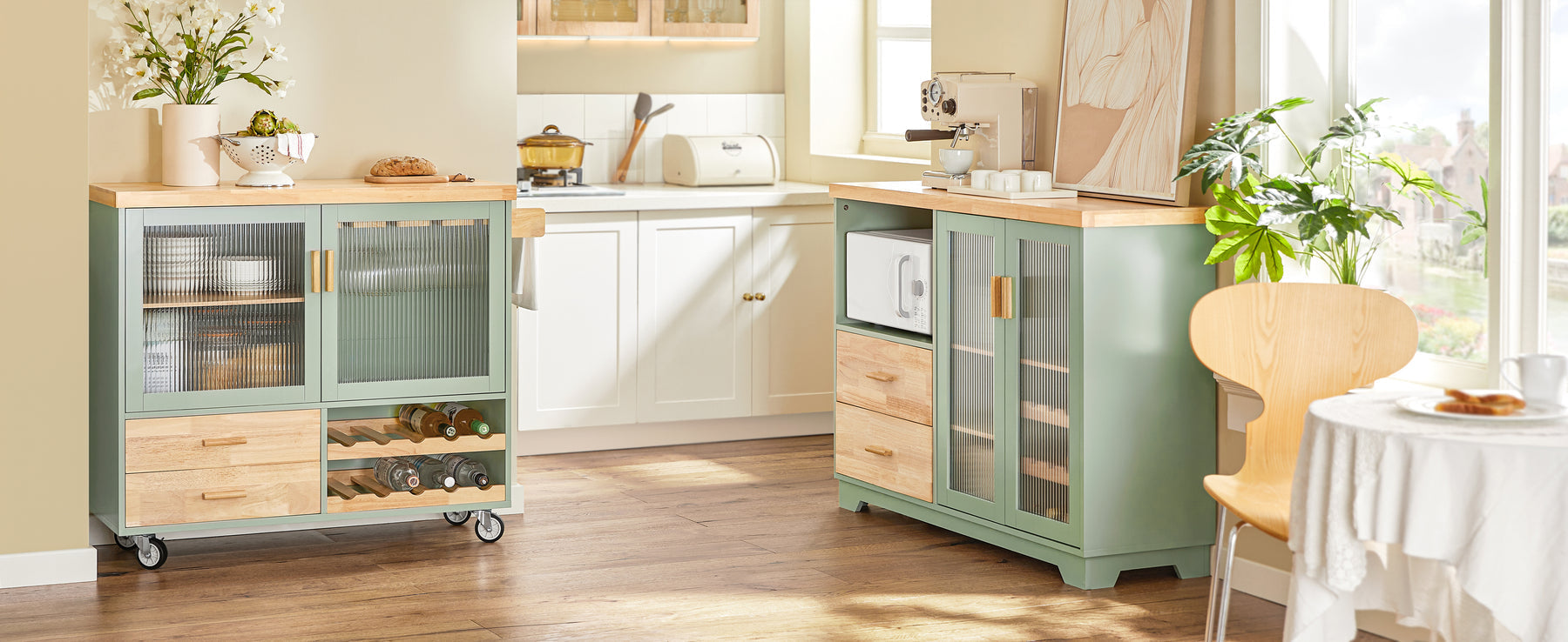 Verbeter de functionaliteit en esthetiek van uw keuken met de Keukentrolley. Dit veelzijdige meubelstuk dient als keukeneiland, dressoir en opbergoplossing en voegt tegelijkertijd een vleugje elegantie toe aan je ruimte.