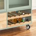 Keukentrolley FKW114-GR - Keukeneiland - Dressoir - Wijnglashouder - Flessenrek - Duurzaam MDF & Bamboe - 109cm x 92cm x 40cm