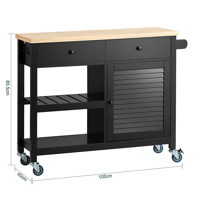 Keukentrolley - Serveerwagen - Mobiel keukeneiland - Krasbestendig bovenblad van rubberhout - Verstelbare plank - Gemakkelijke manoeuvreerbaarheid - 105 cm x 85,5 cm x 40 cm