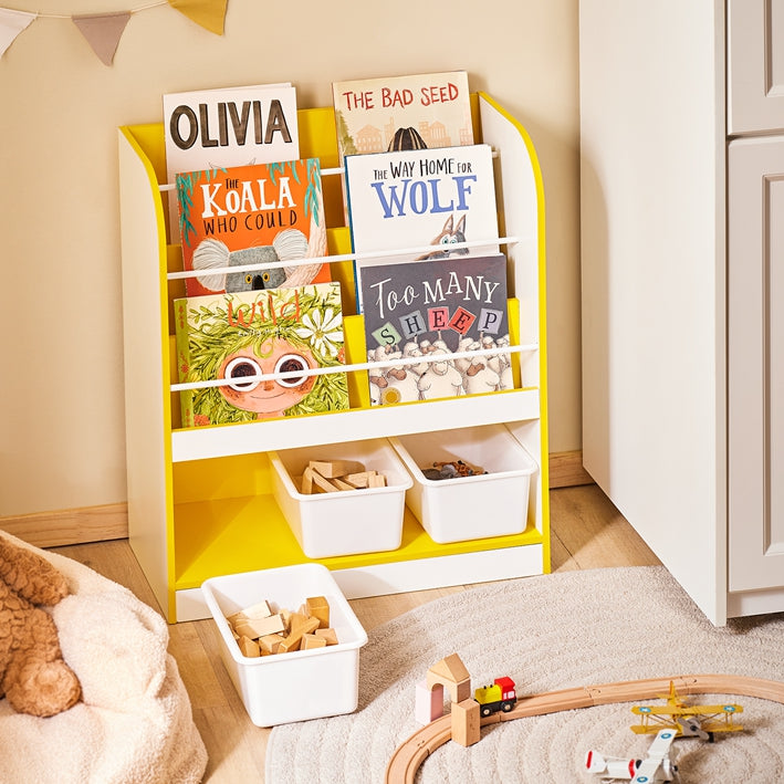 Kids Opbergplank - Organizer - Boekenkast - Ruimtebesparend - 63cm x 76cm x 30cm - Geel & Wit