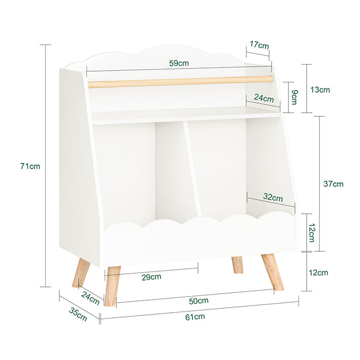 Kinderboekenkast - Kinderboekenplank - Speelgoedorganizer - MDF(E1), Hout - 61cm x 71cm x 35cm - 10,3kg - 2 maten - Eenvoudige montage