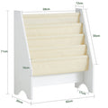 Optimale organisatieDeze boekenplank is voorzien van vier stoffen ophangvakken waarin boeken van alle maten en formaten netjes kunnen worden opgeborgen en tentoongesteld. Het is ontworpen om de toegankelijkheid en interesse in lezen van uw kind te stimuleren.