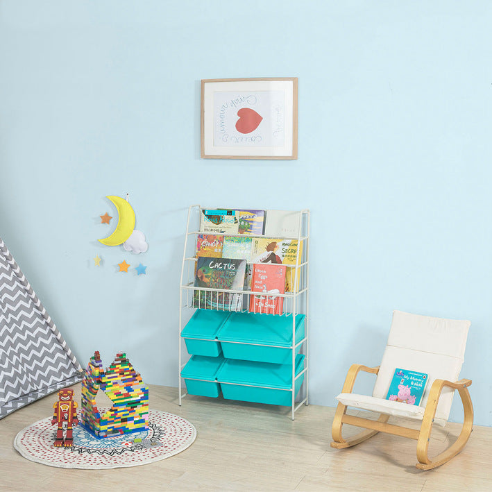 Kinderboekenplank met speelgoedopbergruimte - Organisatorplank - Kinderboekenkast - Duurzaam metaal en PP-kunststof - Versterkte stabiele voeten - 61 cm x 102 cm x 25 cm
