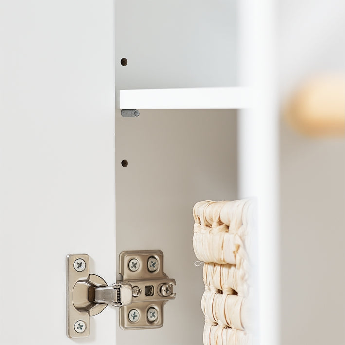 De plank achter de deuren is verstelbaar in drie verschillende hoogtes, wat flexibiliteit biedt voor het opbergen van spullen van verschillende afmetingen, of kan geheel worden verwijderd voor grotere spullen.