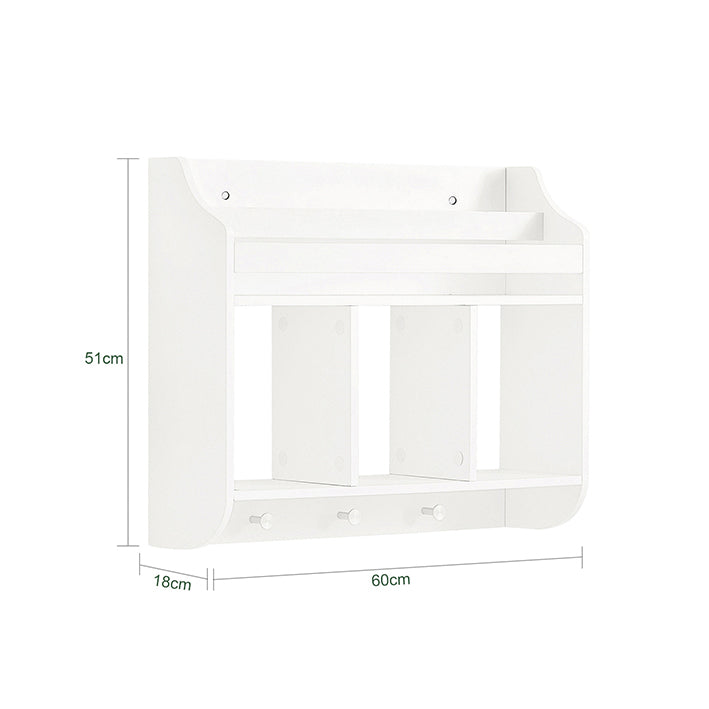 Multifunctionele opslagUitgerust met twee planken en drie compartimenten, biedt hij voldoende ruimte voor boeken en speelgoed. Drie haken bieden extra opbergruimte voor kleine tassen en kleding.