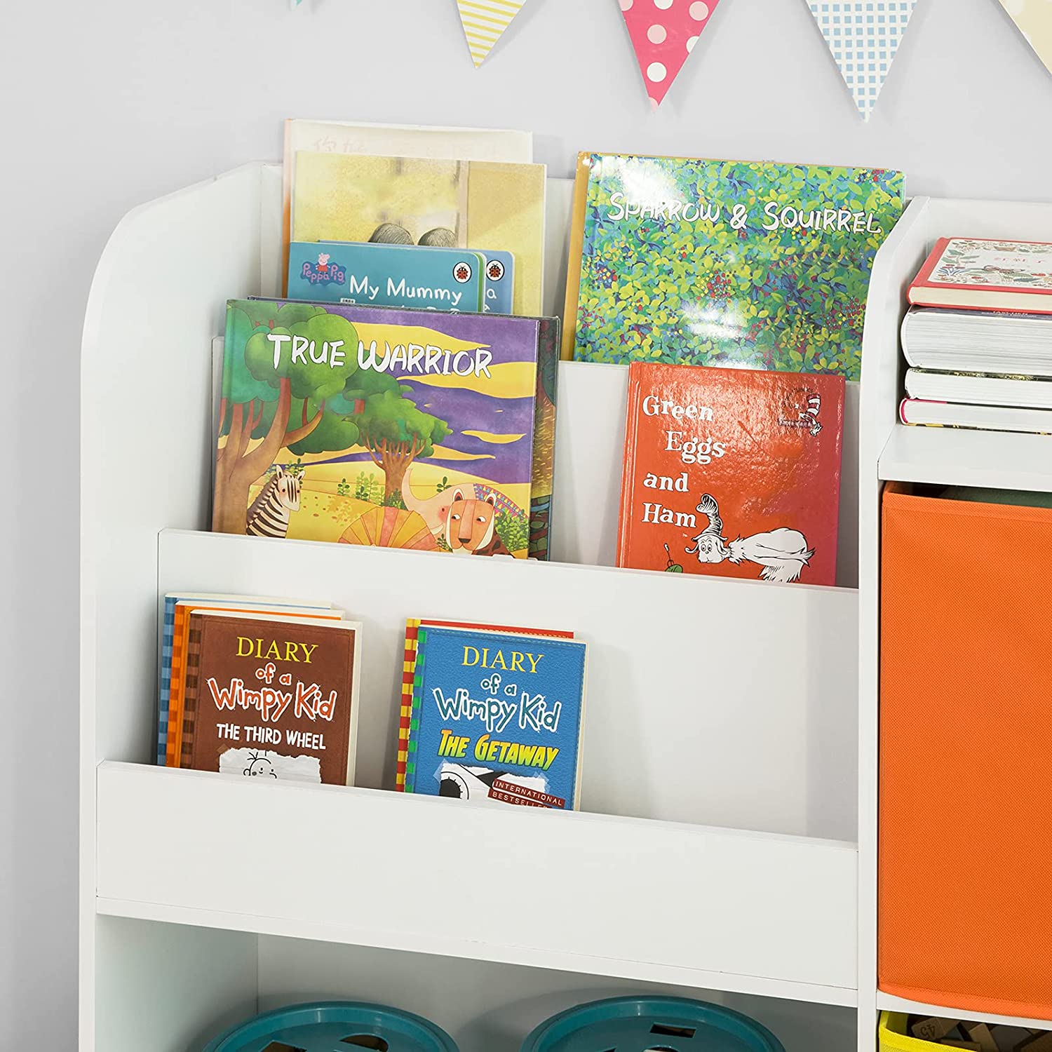 Kinderen Kinderboekenkast Boekenplank - Speelgoedopbergeenheid Opslag Display Plankorganisator met stoffen laden