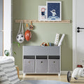 Optimale opslagoplossingMet zes compartimenten en drie stoffen dozen organiseert de Storage Shelf op efficiënte wijze een verscheidenheid aan spullen. Het ontwerp moedigt kinderen aan om mee te doen aan het opruimen, waardoor de onafhankelijkheid en organisatorische vaardigheden worden bevorderd.