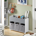 Kinderopbergrek - Speelgoedorganisator - Mobiele boekenkast - Duurzame MDF- en stoffen bakken - Gemakkelijke mobiliteit met afsluitbare wielen - Kindvriendelijke hoogte - 80 cm x 63 cm x 30 cm