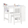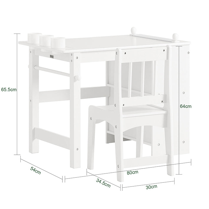 Kindertafel en stoelenset - Studiebureau - Activiteitentafel - Duurzame constructie van MDF en grenen - Opbergplanken - Papierrolhouder - Hoge rugleuning - Afmetingen: tafel 80x65,5x54cm, stoel 30x64x34,5cm