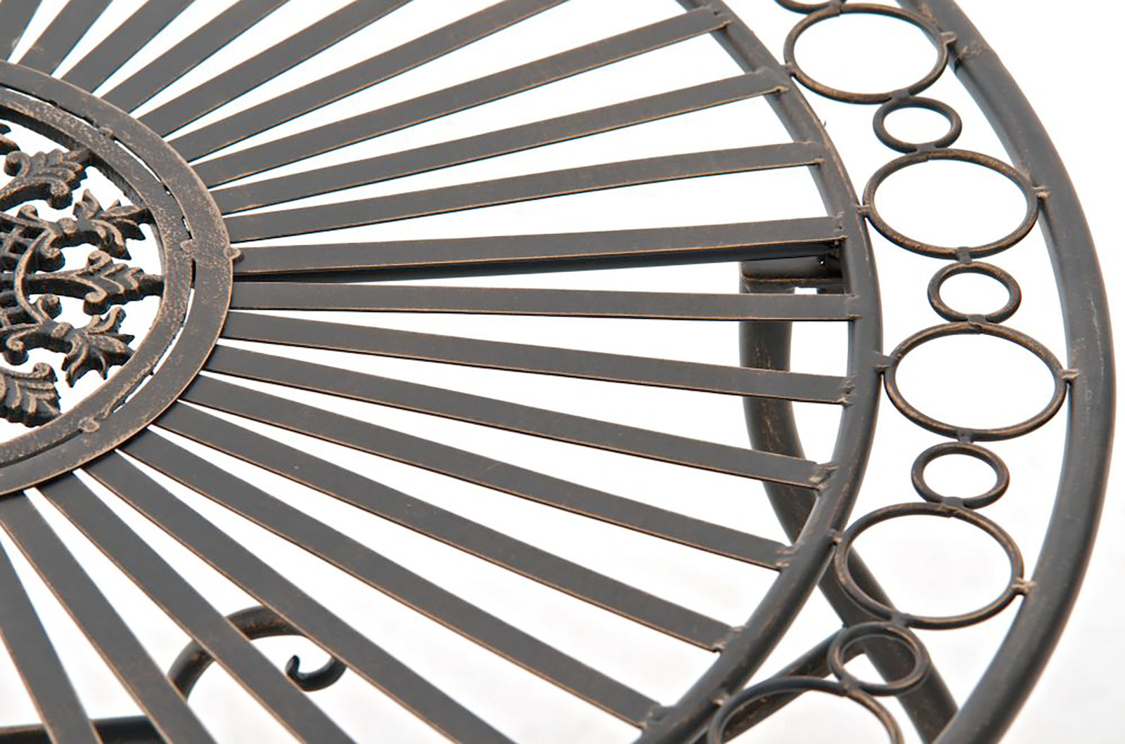 Het product is met de hand vervaardigd uit ijzer en is daarom extreem stabiel. Het oppervlak heeft een antiek patina, met de hand vervaardigd. Dit sierlijke designstuk is gloednieuw en tegelijkertijd een perfecte reproductie in historische stijl.