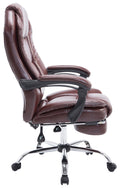 Deze klassieke bureaustoel biedt gezelligheid en comfort. Dankzij de hoogwaardige bekleding en onderhoudsvriendelijke kunstlederen hoes, geniet je van een comfortabele zitervaring, zelfs na lange periodes. De eenvoudig verstelbare voetsteun en rugleuning bieden ontspanning tijdens pauzes, terwijl de traploos verstelbare zithoogte zorgt voor een ergonomische zithouding. De stoel staat stevig op vijf lichtgewicht zwenkwielen en een chromen metalen frame, waardoor hij gemakkelijk over elk type vloer beweegt.