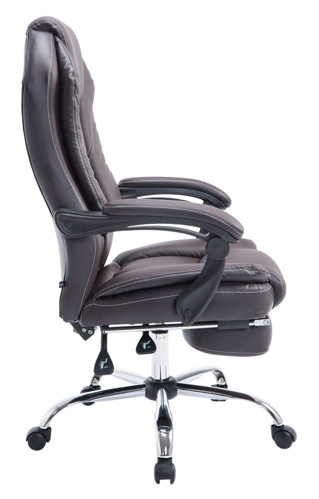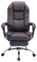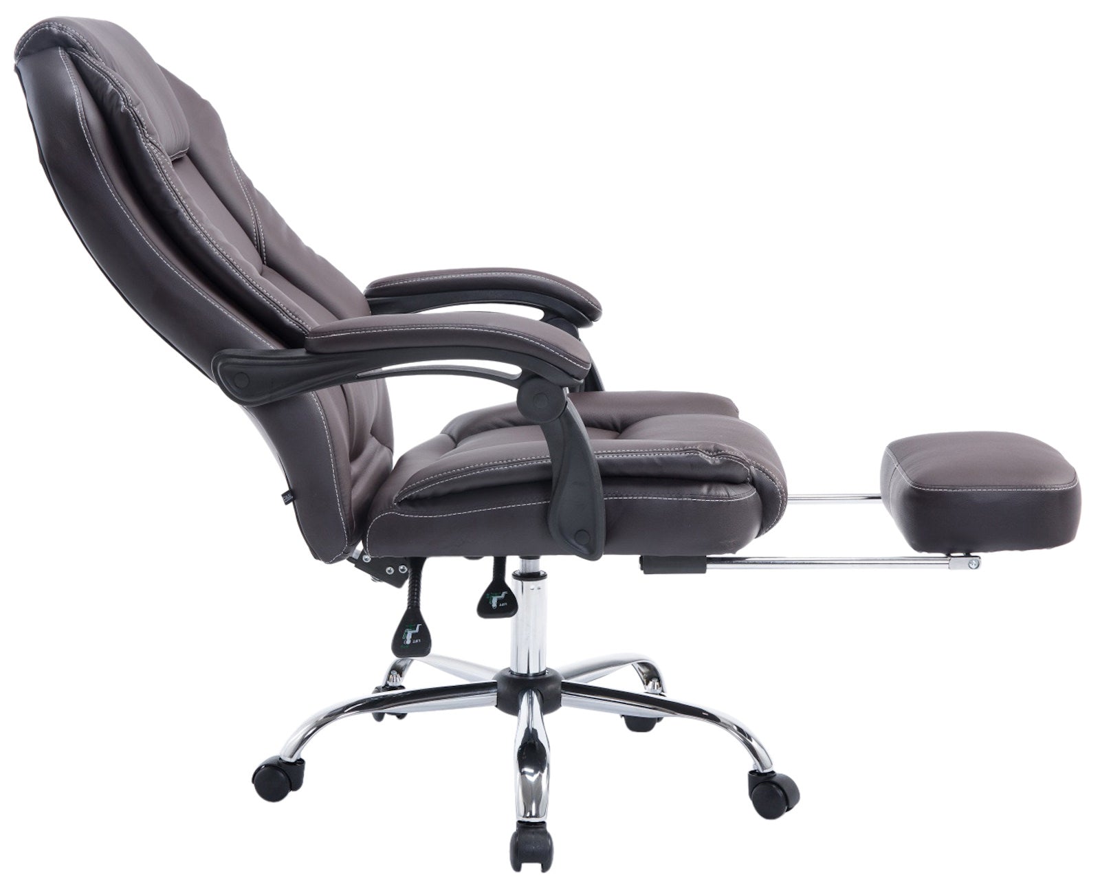 Deze klassieke bureaustoel straalt gezelligheid uit en biedt optimaal zitcomfort dankzij de hoogwaardige bekleding en onderhoudsvriendelijke kunstlederen bekleding. De verstelbare voet- en rugsteunen maken het mogelijk om tijdens pauzes comfortabel achterover te leunen en de benen te ontspannen. De traploos verstelbare zithoogte zorgt altijd voor een ergonomische zitervaring. De stoel is stabiel dankzij vijf lichtgewicht zwenkwielen en een metalen frame met chroomafwerking. Of je nu op een harde of zachte ondergrond bent, je kunt altijd gemakkelijk en soepel bewegen.