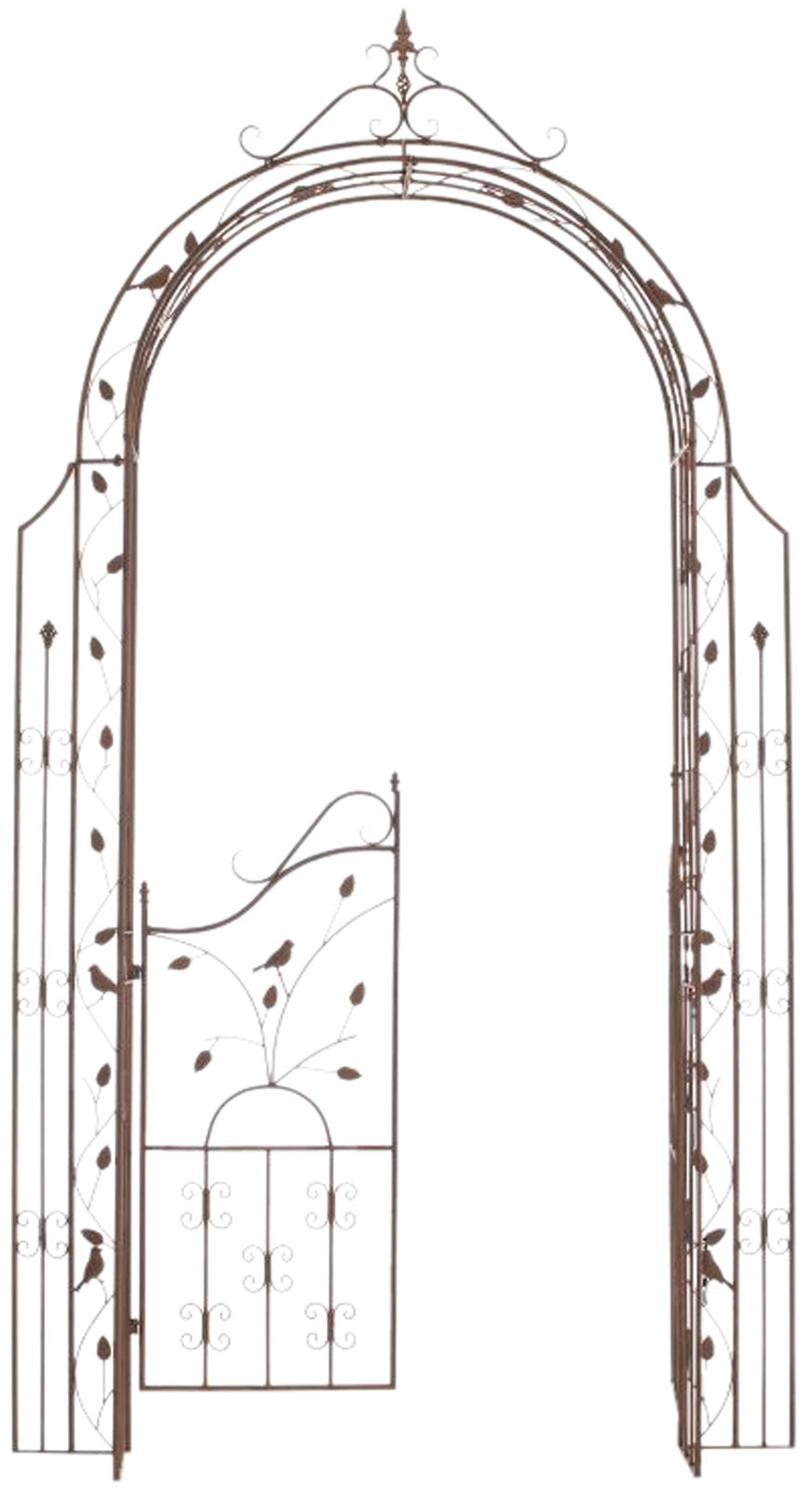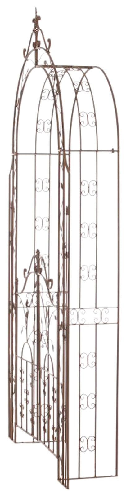 Onze exclusieve tuinboog met poort is liefdevol versierd met vele details en daardoor perfect als klimhulp voor klimop en andere klimplanten. Deze boog, met zijn twee afsluitbare en mooi gedecoreerde poortvleugels, is tevens een opvallende toevoeging aan elke tuin.
