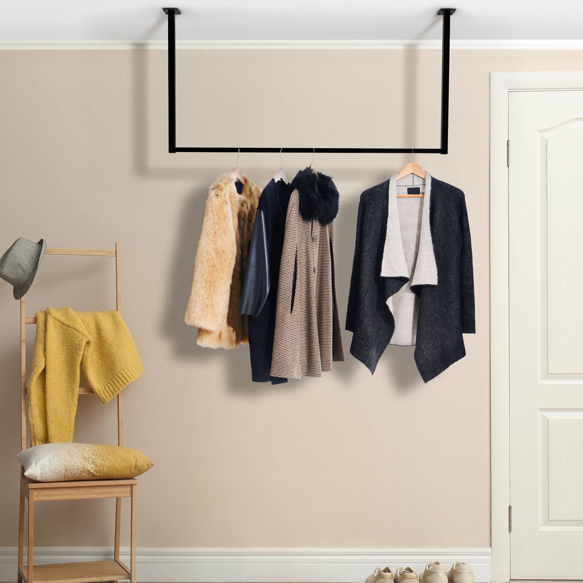 De stijlvolle kledinghanger is ontworpen voor gebruik in gangen, slaapkamers of kleedkamers en biedt een modern minimalistisch ontwerp. Met een ingenieuze plafondbevestiging kan deze hanger gecombineerd worden met onder andere een ladekast of schoenenrek, waardoor het past in elke ruimte. Ruim genoeg voor al uw jassen, blouses en shirts, zorgt deze open roede ervoor dat uw kleding netjes en kreukvrij blijft.