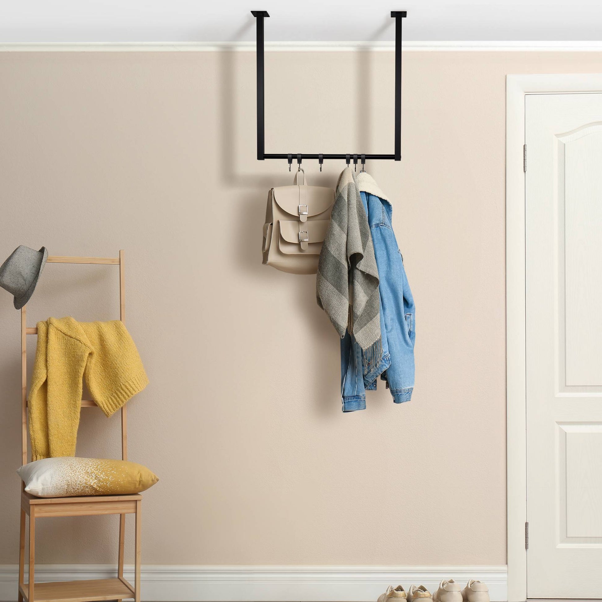 Deze minimalistische kledingstang is ideaal voor gangen, slaapkamers, kleedkamers en meer. De bevestiging aan het plafond biedt veel verschillende combinatiemogelijkheden. Combineer hem bijvoorbeeld met een ladekast, dressoir of schoenenrek. Met genoeg ruimte voor jassen, shirts en blouses houdt deze open kledingroede je kleding kreukvrij en altijd binnen handbereik. De kledingroede is gemaakt van gepoedercoat staal en is stevig en duurzaam, met een draagvermogen tot 50 kilo. Hij is snel en eenvoudig te monteren, met duidelijke instructies en alle benodigde onderdelen inbegrepen. Inclusief zes jashaken met leren lussen.