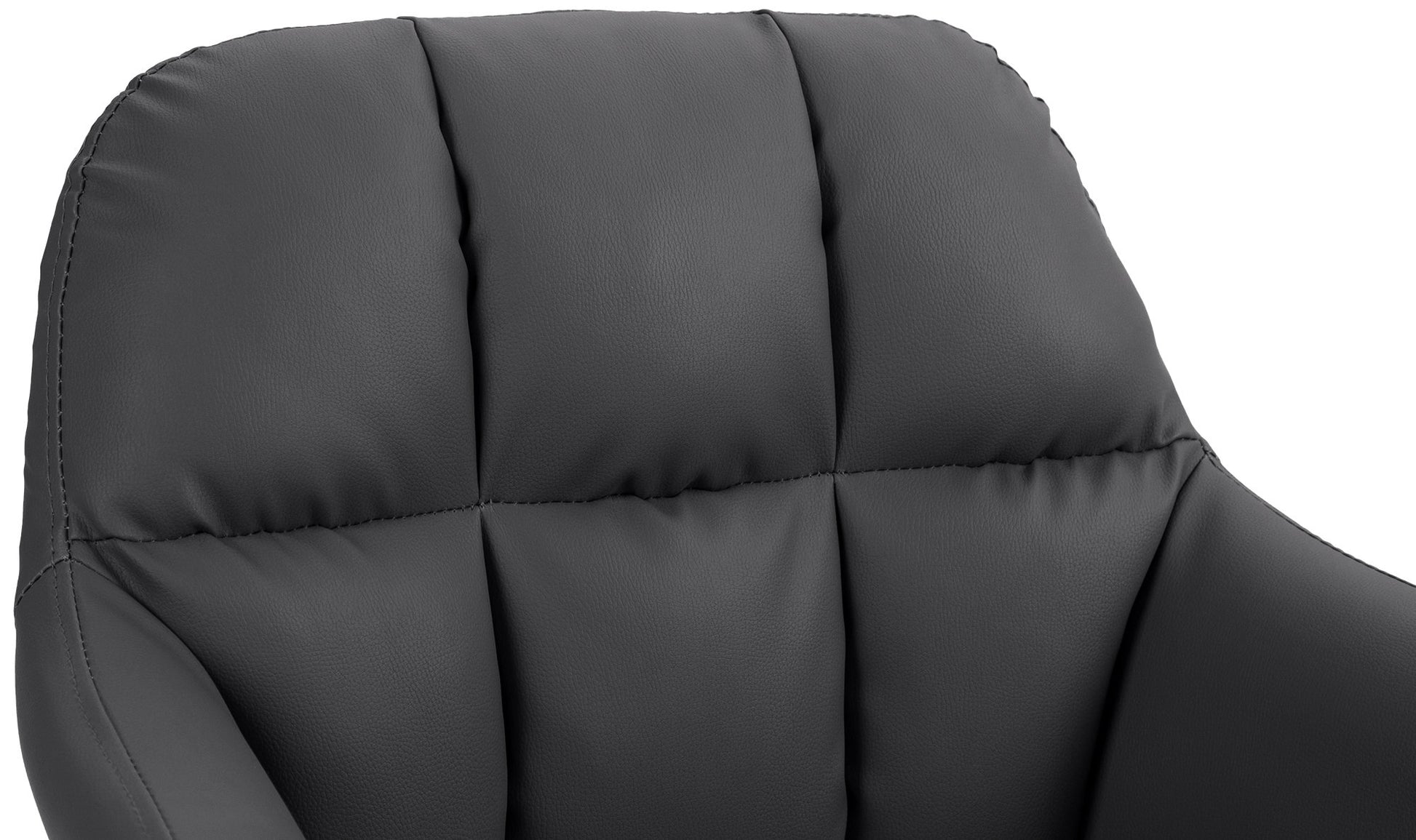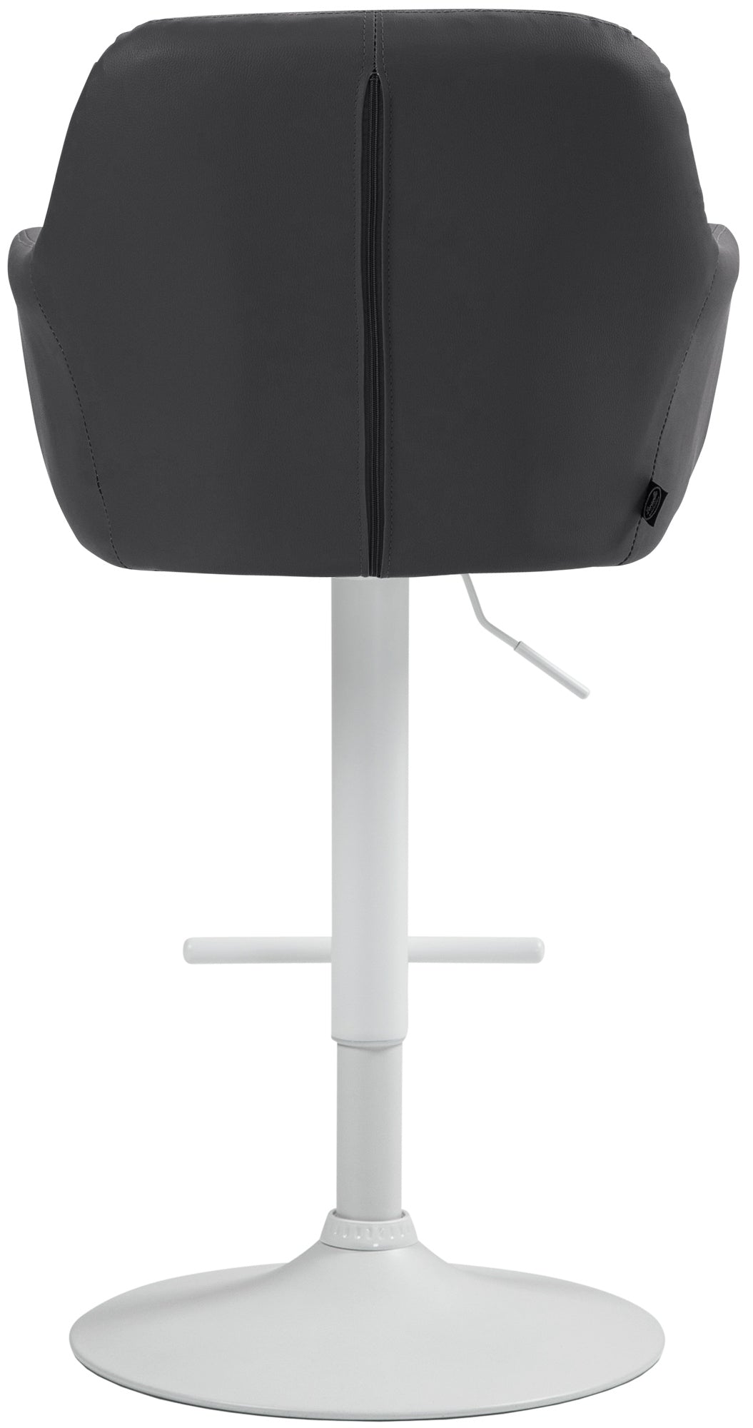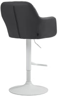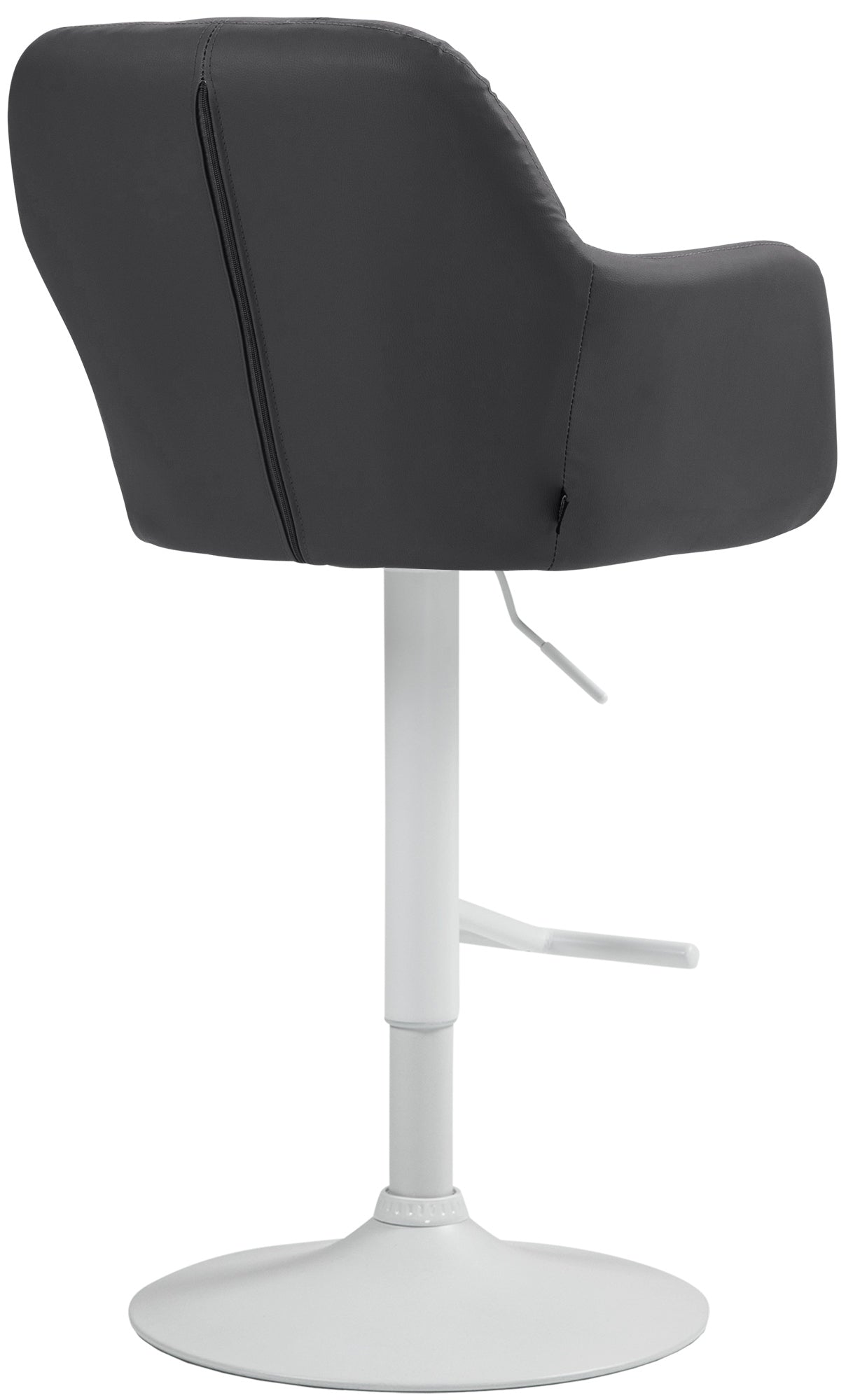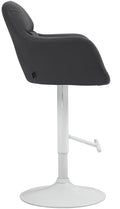 Deze barkruk van kunstleer kenmerkt zich door een functioneel ontwerp en zitcomfort. Met een verstelbare hoogte van 97 tot 118 cm, een breedte van 57 cm en een diepte van 59 cm, past deze zich aan verschillende barhoogtes aan. De zitting en rugleuning van 43 x 41 cm zijn ontworpen voor ondersteuning en comfort. Armleuningen en een voetsteun op de trompetvoet verhogen de functionaliteit, terwijl een vloerbeschermer het oppervlak beschermt tegen schade. Met een gewicht van 9 kg en een draagkracht tot 120 kg is deze barkruk stevig, en de 360° draaifunctie biedt extra mobiliteit en flexibiliteit.