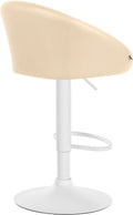 Deze barkruk heeft een tijdloos design en biedt ultiem comfort dankzij de hoogwaardige bekleding en stevige zijkanten, waardoor het bijna op een kleine fauteuil lijkt. De kunstleren bekleding gemaakt van 100% polyurethaan is eenvoudig schoon te maken. Het frame, verkrijgbaar in zwart of wit metaal, zorgt voor maximale stabiliteit. De barkruk is traploos verstelbaar in hoogte door een gaslift en heeft een 360° draaibare zitting.