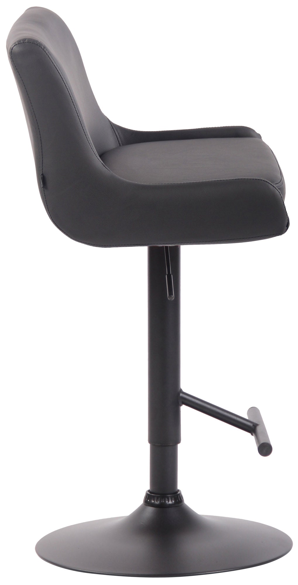 De barkruk valt op door zijn stijlvolle uitstraling. De zitting is bekleed met onderhoudsvriendelijk kunstleer. Dankzij de gasveer kan de hoogte van deze kruk traploos worden aangepast, zodat hij perfect is voor elke toonbankhoogte. De voetsteun, die zorgt voor een uitstekend zitcomfort, is synchroon verstelbaar met de hoogte van de zitting. Beide, de zitting en voetsteun, kunnen 360° draaien. Het frame is vervaardigd van verchroomd metaal en onder de trompetvoet bevinden zich vloerbeschermers om krassen op de vloer te voorkomen.