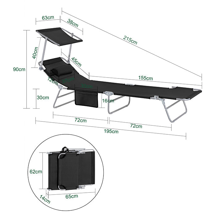 Ligstoel - Opvouwbare strandligstoel - Draagbare ligstoel - Verstelbare zonneklep - Extra opbergvak - 195 cm x 90 cm x 63 cm