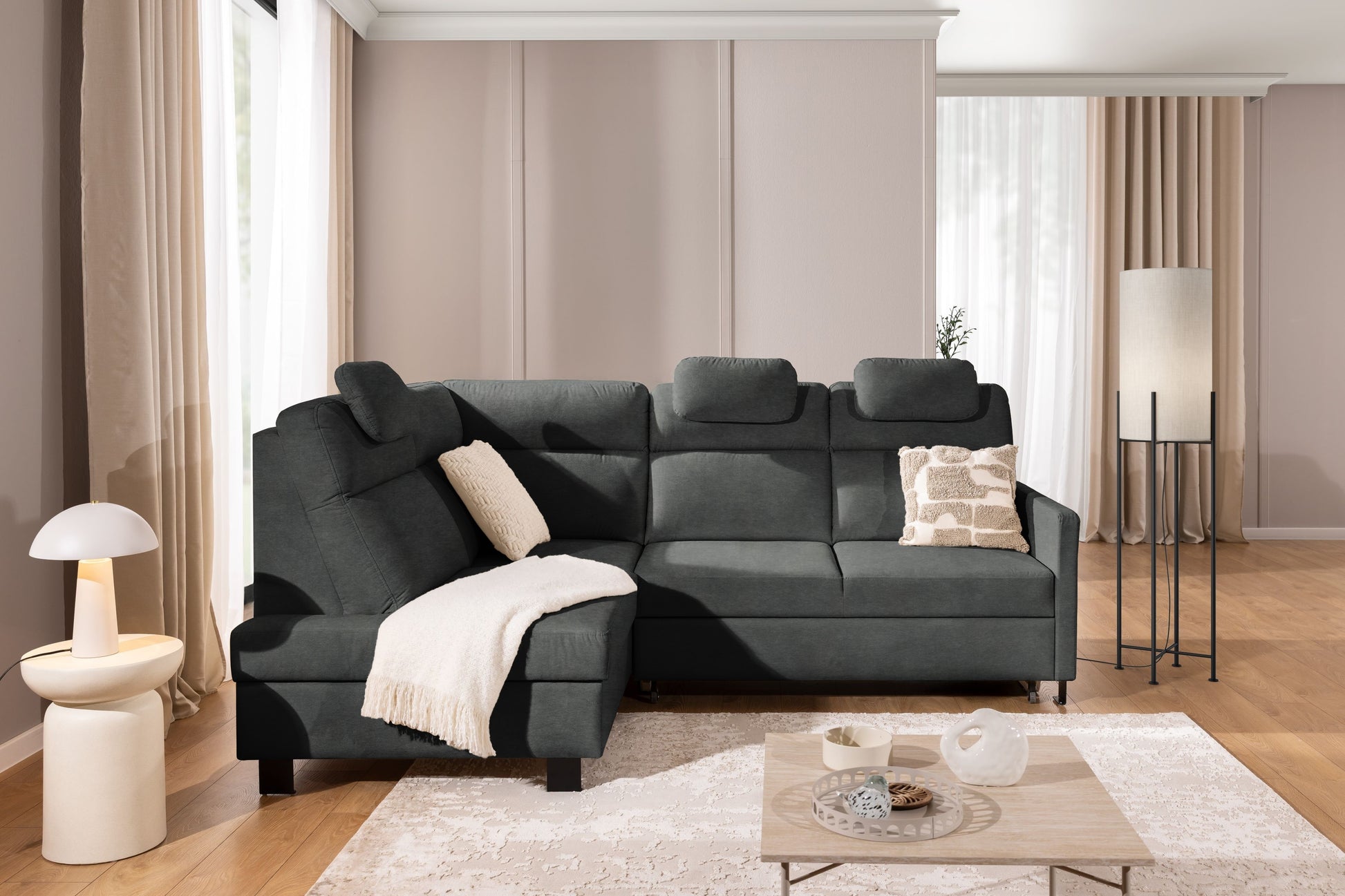 Loario L Hoekbank Links met Dolphin-slaapfunctie - Easy-Clean Fluweel Zetta 305 | Kleur: Grafiet