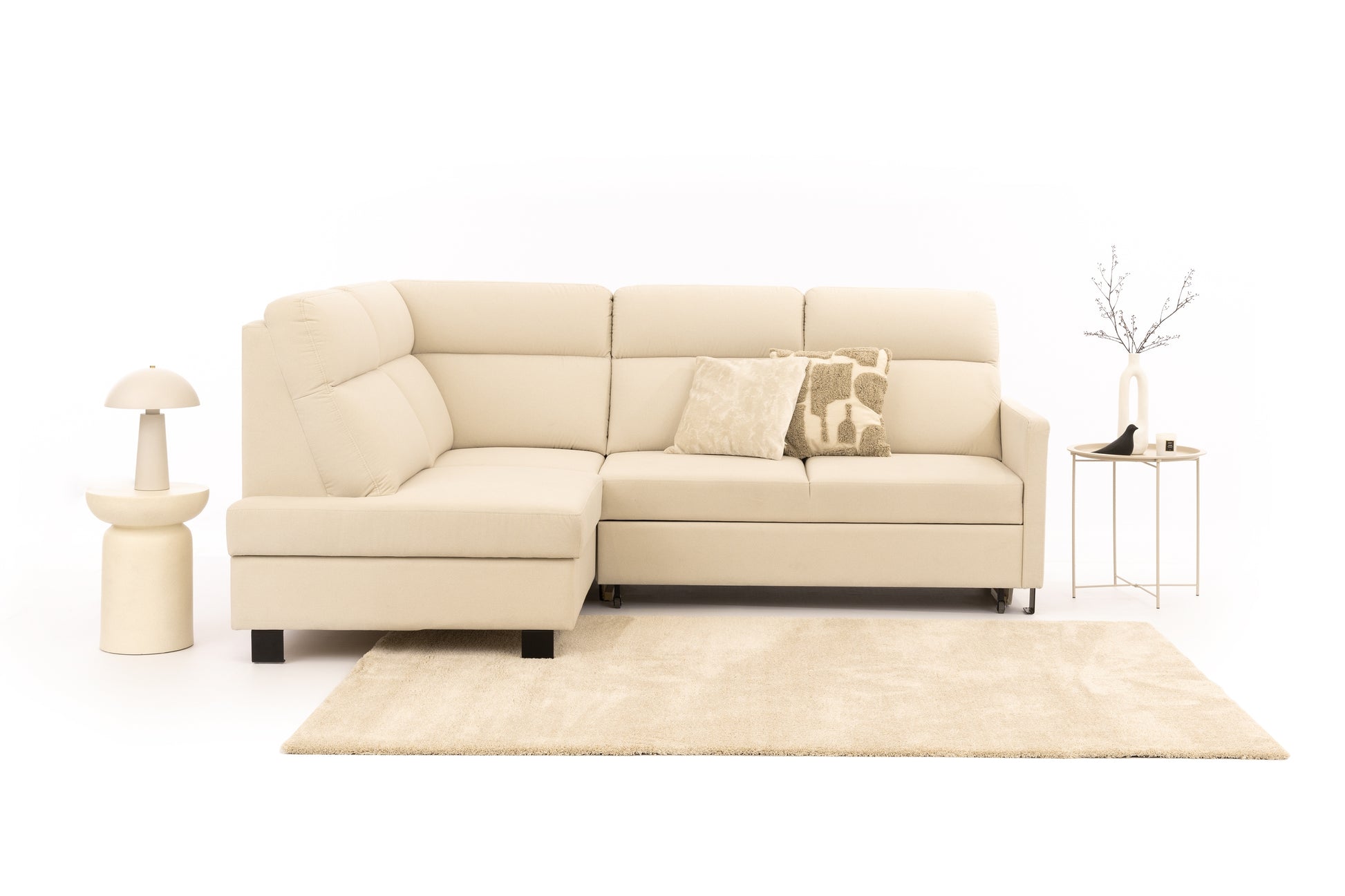 Loario L Hoekbank Links met Opbergruimte & Slaapfunctie | Crème (Sand 03) | 241x100x180 cm