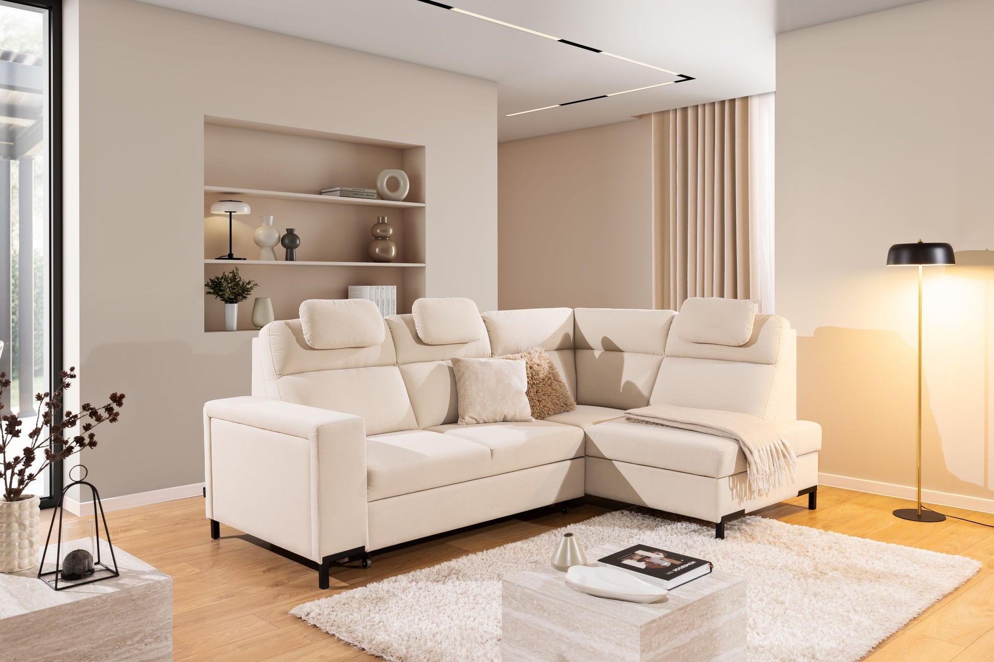 Loario L Hoekbank Rechts met Brede Zijkant - Dolphin Slaapfunctie | Kleur: Crème Sand 03