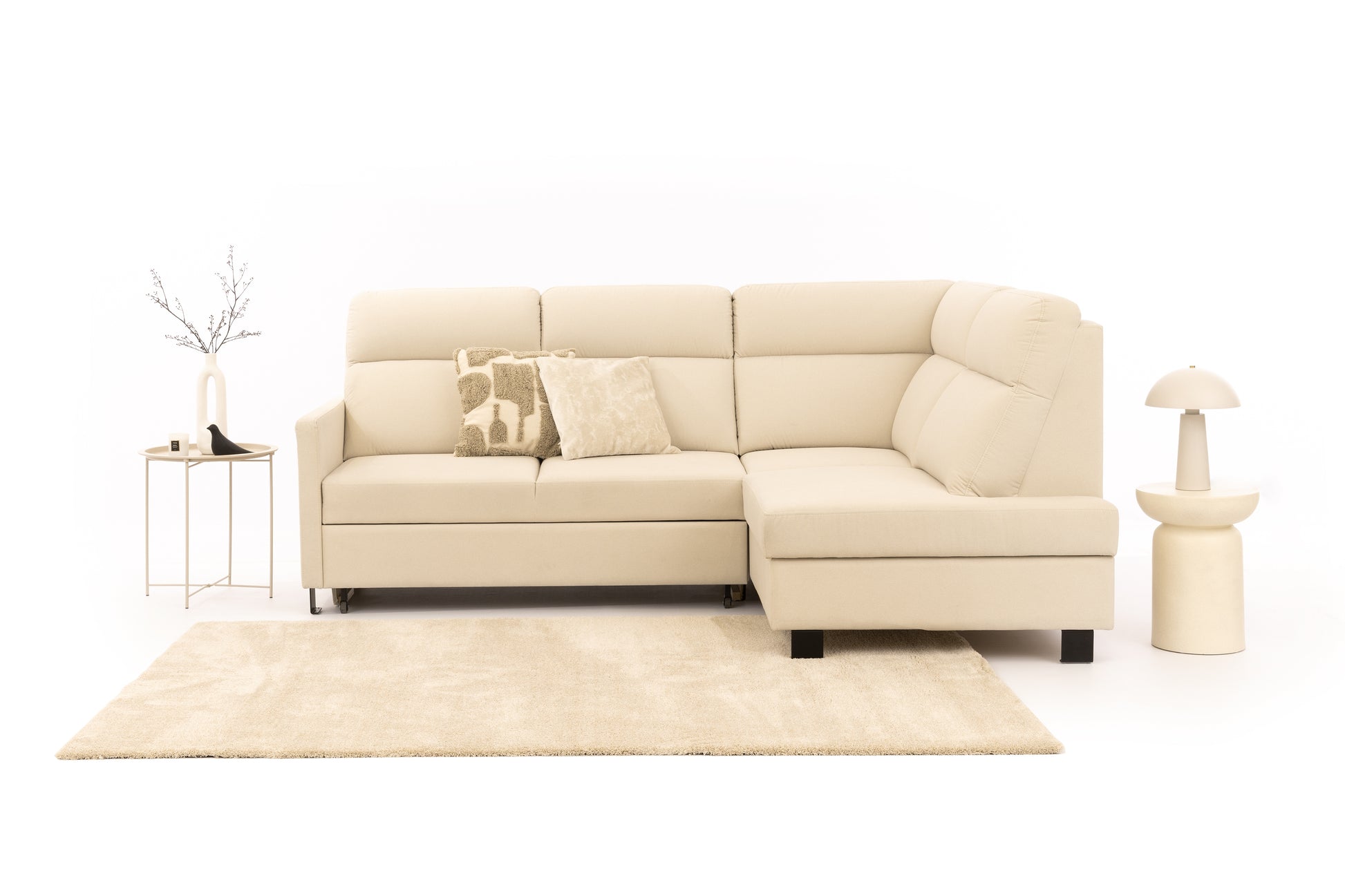 Loario L-hoekbank rechtshandig met slaapfunctie en opbergruimte | Kleur: Crème Sand 03