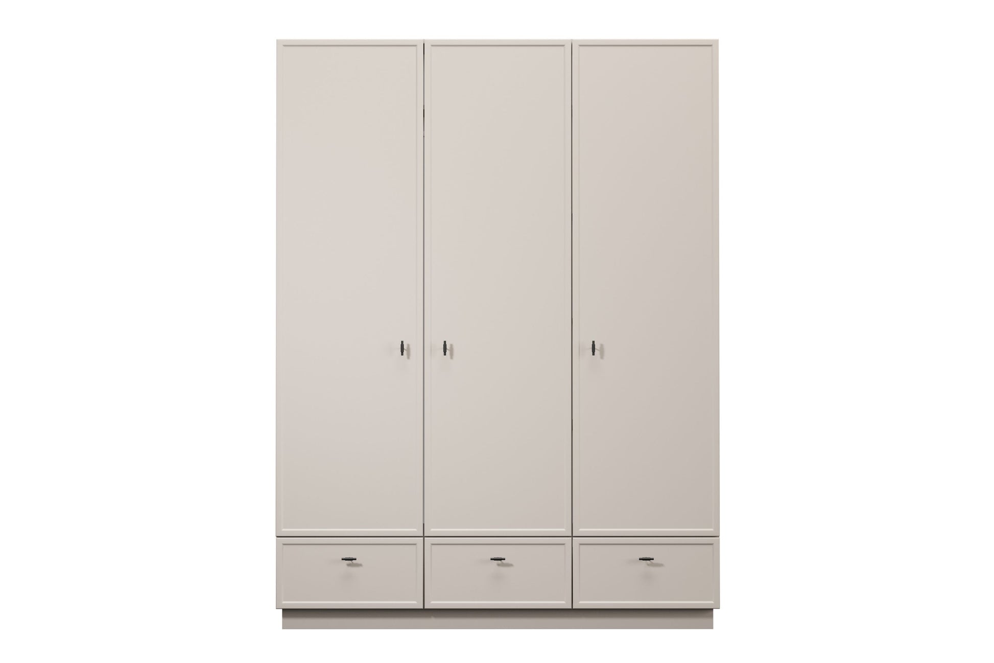 Lorini Kledingkast 150 cm met 3 deuren, 3 lades & planken | Kasjmier | Zwarte T-handgrepen