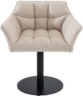 Deze comfortabele loungestoel biedt eigentijds zitcomfort en voegt een exclusieve uitstraling toe aan elke kamer! Met zijn rugleuning, armleuningen en kwalitatieve bekleding, is deze stoel een uitnodigende plek om te zitten. De stevige metalen voet biedt uitstekende stabiliteit en is uitgerust met vloerbeschermers om krassen en uitglijden te voorkomen. Of je nu ontspant in de woonkamer, studeerkamer, kantoor, serre of eetkamer - deze stoel past perfect in elke setting.